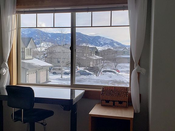 This is a fully furnished master bedroom with private bathroom in a shared 3-bed, 2.5 bath condo with two other very quiet and clean renters. Fresh interior paint, washer/dryer, gas fireplace, electric stovetop, fully furnished. Utilities included in rent. Tastefully and minimally decorated. This condo is close to Billings Clinic, Costco, Target, other businesses, numerous schools and parks. Views of the Bridger Mountains from your bedroom window, easy access to running and biking trails, as well as the interstate. Covered back porch with a view of a wetland and wheat field, one car garage for storage and workspace. Owner does not live on site.