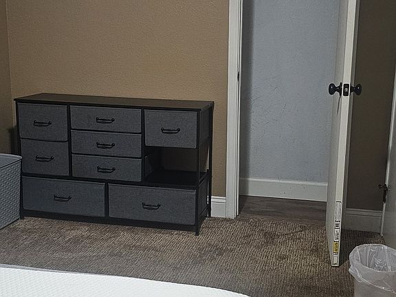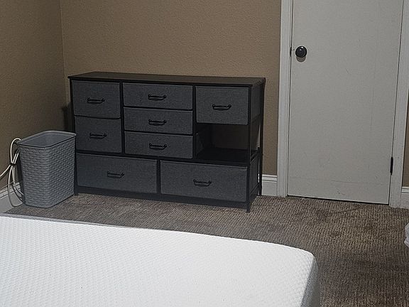 Second story carpeted private room with a large window over looking the common picnic area. Newly remodeled kitchen and bathroom. It is furnished but if you would like to bring your own feel free.