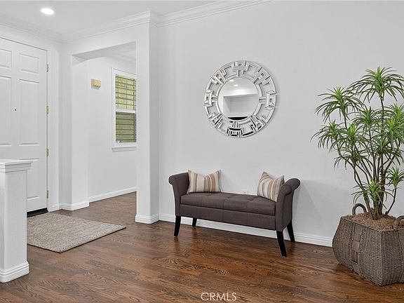 Inside, you’ll find a thoughtfully designed floor plan with two bedrooms plus a versatile den/office. The home has been beautifully updated with bright white paint, refinished gorgeous espresso stain hardwood floors that flow through the main living areas, and natural light accentuated by 37 LED can lights, custom shutters, and high-end shades.