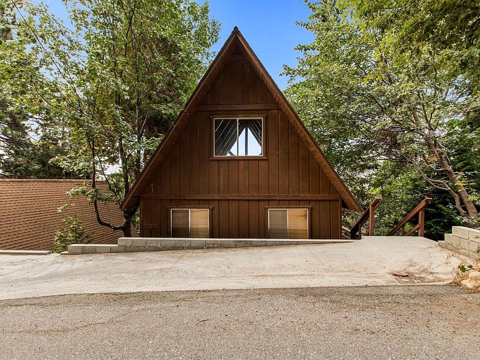 Perched in the treetops of Rimforest, this rustic A-frame cabin hideaway will capture your mind and vision for a taste of the mountain lifestyle. With all new flooring, interior paint, newly refinished kitchen, new thermostat, updated electrical breaker box, this property is turn key. Embrace the warmth & the comfort of the main living room that the bright panoramic A-frame style window provides. A captivating view of the seemingly touchable mountain trees with an abundance of cozy, mountain charm. A must see bungalow in the pines located just a short drive from the 18 and the 330, with accommodating parking. This may very well be the special mountain escape you have been looking for. Come see for yourself and imagine the possibilities.