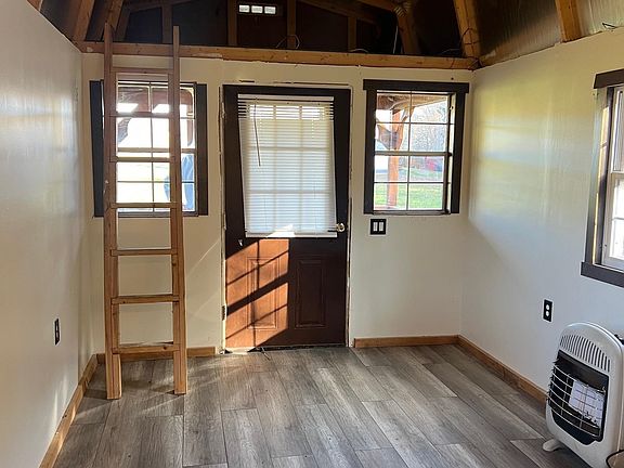 Check out this cozy little weekend retreat! This 8x20 cabin offers a nice 6 foot porch for morning coffee and wildlife watching, finished interior equipped with heat and air, engineered flooring and offers a half bath with vanity. Sitting on approx 1/2 acre Situated just outside of town this is the perfect opportunity to have a long weekend sitting by the camp fire ! Has plenty of space for a camper site, and sits right on the creek side. Lots of yard for cornhole, horseshoes or whatever the kids like to enjoy. Has 2 lofts over each end of the cabin and offers water and electric. Perfect little getaway!
