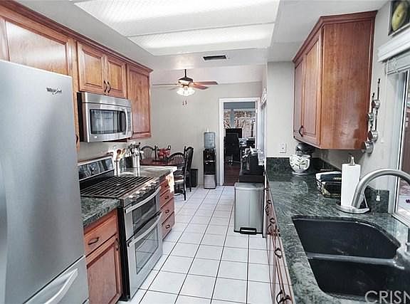 Here's your chance to own a home in the Desirable Rainbow Glen area of Canyon Country. This largest Rainbow Glen Estates model offers 4 bedrooms, 2 and a half baths and one of the largest yards in the neighborhood with vinyl fencing. This home features wood-like flooring throughout, downstairs offers front living and formal dining area, family room with cozy fireplace, added bedroom has a separate entrance from side yard, recently updated powder room. The upstairs primary bedroom leads to a large deck overlooking the lush backyard, newer custom closet doors and pull out organizers, attached en-suite bathroom has been updated with granite and spa stone shower. Newer A/C, Furnace and Water Heater. Included in sale - backyard gazebo, shed, flat screen T.V. in patio, upstairs deck gazebo, and washer/dryer. The Rainbow Glen Community is conveniently located close to schools, shopping, dining, parks and transportation. The low HOA fee covers all front yard lawn/tree maintenance, 24hr security patrol and offers a Pool, Spa, Basketball/Tennis courts, playground and guest parking.