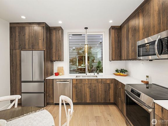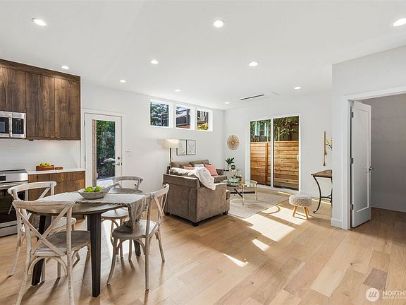 **3% Buyer Bonus towards Buydown or Closing Costs.** Stunning new residence by AM Homes NW nestled at the cusp of Schmitz Park & North Admiral. Open concept living room with freeflowing environment and immense natural light. Stylish kitchen, Bellmont cabinets with custom lighting detail, quartz counters, and SS appliances. 2beds/2.25baths with generous sized primary suite and en-suite bath, vaulted ceilings, SW exposure. Mini-split heating & cooling throughout. Dedicated 1 car parking prepped for EV charging. Mature landscaped grounds provide serene experience. Just a few minutes walk to Admiral Junction or Alki beach and its shops & eateries.