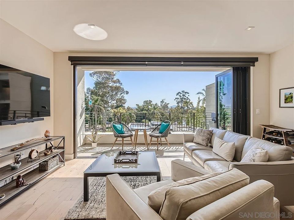 Luxury living in Bankers Hill! Get ready to be wowed by the foldaway glass wall in the open concept living room, which showcases incredible views of Balboa Park and the California Tower. This modern living space offers dual owner suites, wide-plank wood flooring, and high ceilings throughout. The chef’s kitchen features an oversized island, quartz countertops, a custom tile backsplash and high-end Bosch stainless steel appliances. Both bathrooms boast upscale finishes – one includes a stunning “wet” room with soaking tub, plus a walk-in closet, while the other has a large walk-in shower and ample closet space. Located in the heart of Bankers Hill, Vue on 5th puts you at the center of a vibrant dining and entertainment scene. Balboa Park is practically at your doorstep – enjoy easy access to its museums, attractions and the world famous San Diego Zoo. One garage parking space (conveniently located across from the elevator) is included and comes with its own electric car charging station. A private storage locker is also included.