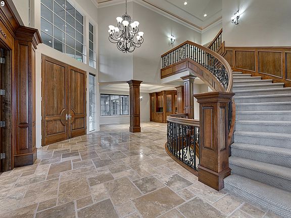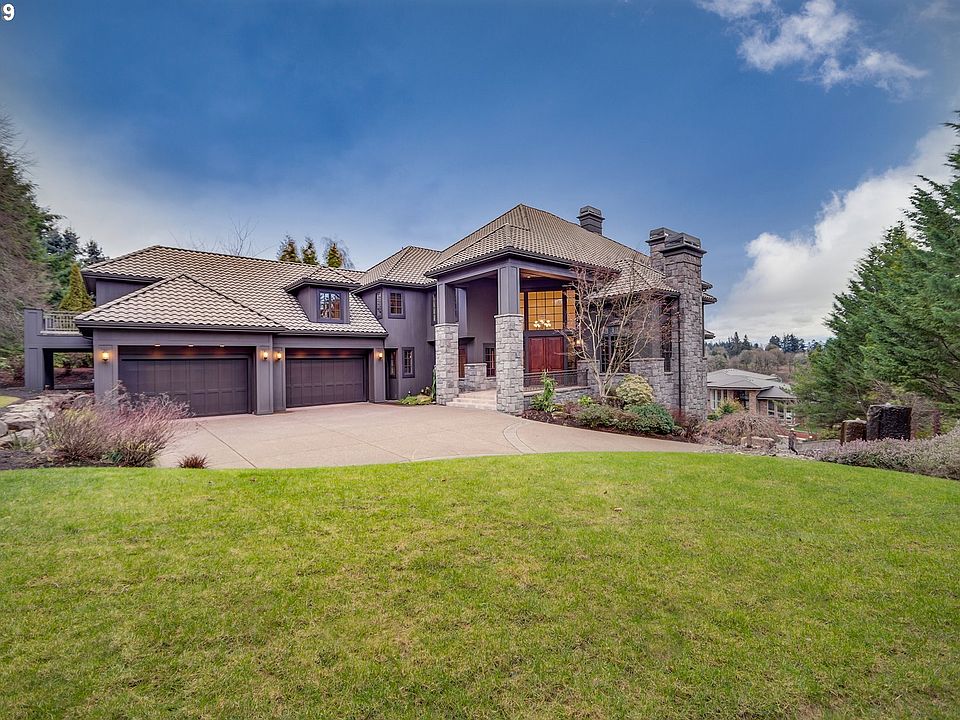 Major renovations and updates have transformed this already outstanding Mt Hood view estate on a half acre into a light-filled masterpiece which elevates the lifestyle of its' fortunate homeowner. In the intimate gated LeChevalier community, over 12,500 sq ft of fine millwork, cherry hardwoods, spacious cook's kitchen, elevator, 5 bdrms, 7 full & 2 half bths, gorgeous basalt stone siding and over 3,000 sq ft of mountain view terraces.