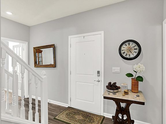 Welcome to this immaculate, low-maintenance and like-new 2 story cottage home near Trailside's Community Lifestyle Center with amenities galore including swimming pool, fitness center, tennis, bocce ball, pickleball and basketball courts plus a community garden. As you step into this inviting home you'll notice the attention to detail in the selections. Open great room with fireplace flows to kitchen and dining area featuring beautiful white shaker style cabinets, stainless steel appliances, gas range and tile backsplash. Enjoy casual meals at the peninsula island also great for entertaining. You'll love the spacious back hall bench / drop zone with adjacent laundry room. Main floor flex space perfect for a home office, guest room, or playroom with glass french doors and closet (currently used as dining room). Upstairs you'll find an open loft plus 3 additional bedrooms. The light-filled and spacious primary suite features dual sink vanity, glass door shower plus walk-in closet. Two of the bedrooms have a peekaboo view of the community pond. Finished and insulated garage features bump out, great for extra storage and is brightened with windows in the garage door. This unique homesite is next to neighborhood greenspace creating a private outdoor patio oasis with beautiful landscaping and perennials, providing a welcome respite to come home to at the end of the day. Nearby conveniences include Moontown Brewery, Hattie's Coffee House and the Big 4 Rail Trail.