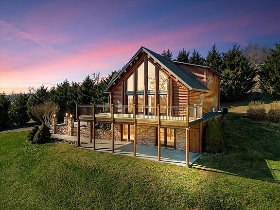 Step into the enchanting embrace of this first time on the market, custom-built masterpiece. A captivating blend of rustic elegance and modern comfort, this home is crafted from Northern white cedar logs and timber frame, nestled on 3.2 acres. Lose yourself in the tranquility of million-dollar views that surround this meticulously maintained retreat. From the moment you cross the threshold, be swept away by the grandeur of vaulted ceilings and an airy loft, seamlessly merging with the spacious kitchen, dining, and living areas - a haven for both lively gatherings and intimate moments of repose. Your personal oasis awaits in the master suite, boasting a generous walk-in closet, a rejuvenating shower, and a jetted tub. Below, the walkout basement extends the allure, leading to a covered porch through French doors, where the gentle embrace of nature invites you to unwind and recharge. Perfectly situated just off I-81, discover effortless access to a plethora of recreational delights, from the serene NRV walking trail to the sparkling waters of Claytor Lake and the greens of Draper Valley golf course. With the vibrant campuses of Radford University and VT nearby, this is more than a home - it's a gateway to a life filled with boundless possibilities and enduring memories. Welcome home to your own slice of paradise.