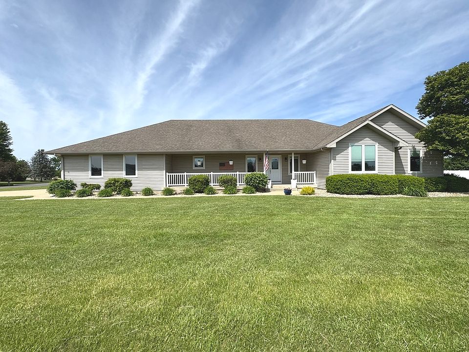 Perfectly designed for comfort, functionality and entertaining! Step inside to discover rich hardwood floors flowing through the main living area, adding warmth and elegance to the spacious layout with cathedral ceiling, gas log Fireplace, and plant shelf. Kitchen features Corian countertops, glass tile backsplash, snack bar w/4stools, pantry and Stainless-Steel appliances. Convenient main floor laundry! Comfortable primary bedroom with large WIC, primary bath w/double vanity, shower and whirlpool tub. The finished basement extends your living space with 2 additional bedrooms perfect for guests, or as home office or playroom. Each bedroom offers egress windows for sunlight and safety. The impressive home theatre is ideal for movie nights or game day gatherings. Situated on a sprawling 1+ Acre lot, the outdoor area is a private oasis, including your very own palm trees. Enjoy summer days in the heated inground pool, unwind on the patio, or host friends in the generous entertaining space, all enclosed with privacy fencing. Two convenient sheds provide ample storage for pool equipment and outdoor furniture. This quality-built home is a rare blend of everyday comfort and resort-style living inside and out. Solid oak trim and 6 panel doors with most interior doorways being 36". Purchase this property furnished, turn-key! Pella triple-pane windows approximately 8 years ago, well pump 2020, heated 3 car garage w/hot & cold water, drain and cable, 14KW Generac generator, reverse osmosis run to kitchen refrigerator. Automatic lighting in pantry - entry coat closet - primary BR closet and linen closet. *Herscher School District