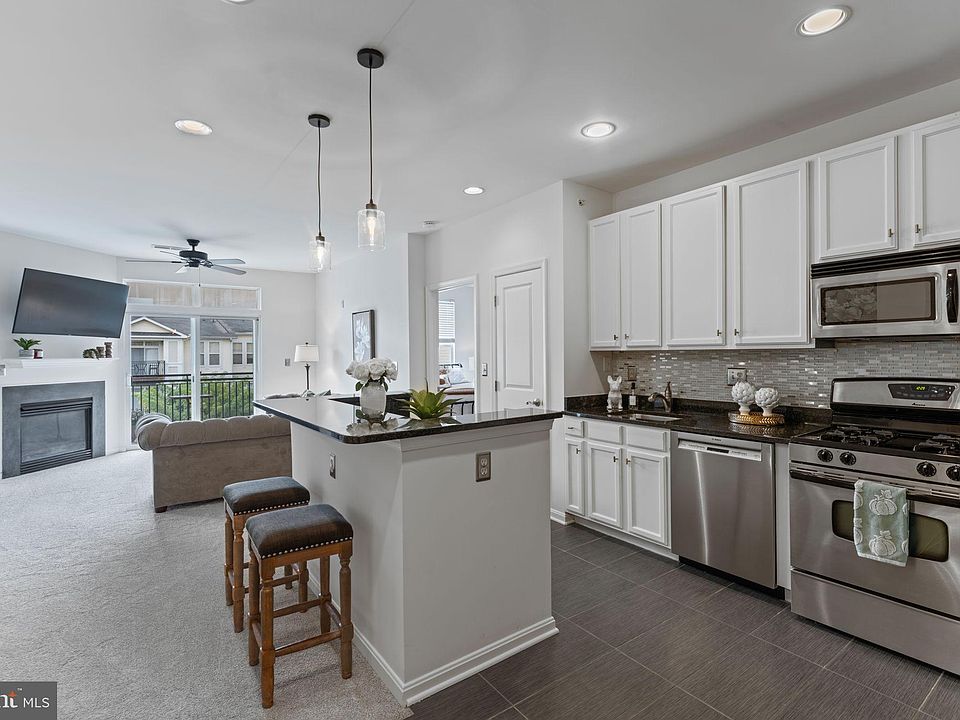 Presenting a bright and spacious two-bedroom, two-bath condominium located in the prestigious Halstead at the Metro community. This light-filled home features an open floor plan with brand new carpet & fresh neutral paint throughout. The living room is accented with a gas fireplace with a mantle and sliding glass door access to the coveted private & serene balcony overlooking the community courtyard. The kitchen features tall modern cabinetry, granite countertops, an island with a breakfast bar & pendant lighting, and stainless-steel appliances (Bosh dishwasher 2022 & refrigerator 2018). A separate dining area large enough to fit a full-sized dining table completes the main living area. The spacious primary bedroom has more than enough room to fit a king bedroom set and is accented with plush carpeting and a ceiling fan. It features an ensuite bathroom with upgraded flooring, double vanity, & a sparkling white shower with jetted soaking tub, plus a HUGE walk-in closet with tons of storage options. The second bedroom features large dual closets, a ceiling fan & ensuite access to the second bathroom, accented with upgraded flooring. A laundry closet with full-sized washer & dryer and plenty of storage shelving completes this home. Other home features include a new water heater (2024) and newer HVAC (2018). The home comes with two assigned and covered garage parking spaces (G4-032 and G5-038) and a storage unit in the basement (#70). Community amenities at Halstead at the Metro II include a spacious fitness center, outdoor pool, indoor basketball court, business center, game room, and electric car charging station. Prime location next to the Metro, Harris Teeter, shopping, restaurants, and the Mosaic District. Easy access to I-495, I-66, Rt 50, Rt 29, and very close to Tysons Corner! Steps to Dunn Loring metro station for easy commuting!