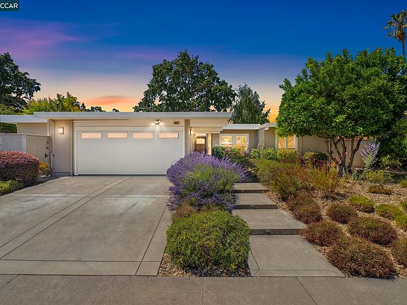 Rebuilt in 2012, this 4 bed, 3 bath Eichler home in Rancho San Miguel, has modern amenities for today's lifestyle. The spacious kitchen features stainless steel appliances, two ovens, a gas range cooktop, ample cabinetry for storage, pantry w/ revolving shelves, and large island with even more storage and a sink- excellent for cooking and gathering. The flexible floor plan includes a cozy den and fourth bedroom that can easily serve as a home office. The expansive primary suite offers a spa-like bath with double sinks, walk-in closet, jetted soaking tub, separate shower, and bonus flex space off the primary. An additional ensuite bed and bath provide great versatility for guests. Skylights throughout fill the home with natural light. Mini-split systems with heating & a/c, tankless water heater, and double pane windows ensure year-round comfort. The finished garage with epoxy floors, and utility sink connects to a separate shop- ideal for an art studio, gardening and projects or additional office space. Relax in your yard with fruit trees and low maintenance landscaping. Close to Heather Farm Park, trails, downtown WC shops and restaurants, freeways, BART, RSM Swim Club, and top rated schools. If you're looking for an amazing neighborhood & community, come see this sweet gem!