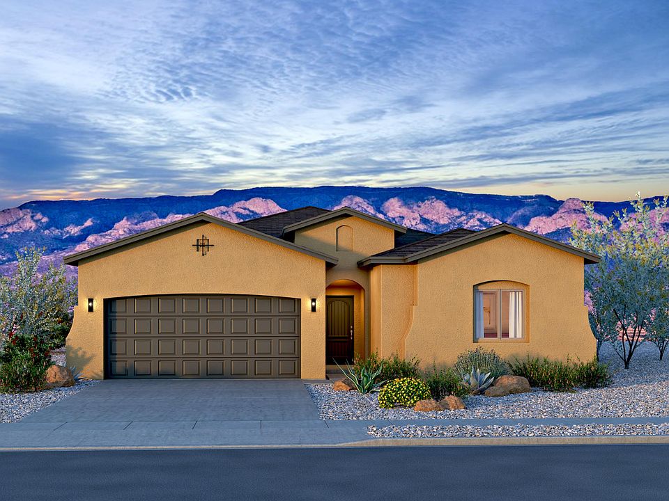 The Jane floor plan offers the perfect blend of comfort and flexibility, featuring 3 bedrooms , 2 full bathrooms , a powder bath , and a flex room ideal for work or play. A spacious kitchen with a large island flows seamlessly into the open great room , creating an inviting space for entertaining or everyday living. The 2-car garage includes overhead storage , giving you extra room for all of life's extras, while the covered patio lets you enjoy New Mexico's sunshine year-round. With available upgrades like level 2 quartz countertops , oversized sliding glass doors , or a cozy fireplace , the Jane is designed to adapt to your lifestyle-without sacrificing style. Inspired by timeless grace and everyday ease, the Jane is where function meets charm.