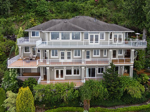 Lake Whatcom Living... surrounded by an award winning English garden! Nestled in a private setting along the shoreline with a grassy beach & dock. Come experience an intimate feeling with the water. Architecturally appealing floor plan & finishes. Light and bright interior featuring a commanding lake view from every room. Three view decks overlooking the lake and foothills. Interior boasts hardwood flooring, tile, & stunning trim details. Open kitchen with a lake & garden view. Theater room, wine cellar & 3 large living areas. Bring the boat!