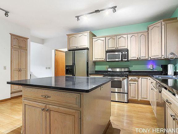 A nature lover's dream on 10.5 acres in Gobles! Step onto this expansive property and enjoy your own private retreat — a hunter's paradise or an outdoor enthusiast's haven. Trails wind through the acreage, perfect for exploring, wildlife watching, or simply soaking in the peace and quiet of country living. Whether you envision hunting, hiking, gardening, or space for recreation, this land delivers. The home's walk-out basement provides exceptional versatility with private access, 2 bedrooms, a full bath, kitchen, gas fireplace, laundry, and even its own garage. Ideal as a mother-in-law suite, rental, or guest quarters, this lower level offers endless opportunity for additional living or income. The main level features a spacious living room with a fireplace and French doors leading to a large deck overlooking the acreage — the perfect gathering place for guests. You'll also find a main-floor primary bedroom, laundry, and an open kitchen with adjoining dining area. Upstairs includes two additional bedrooms and a half bath, making space for everyone.