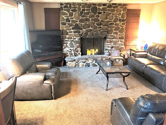 This beautiful ranch home with a 2.5 detached garage is located on a double lot. The home features a beautiful natural gas fireplace in a spacious living room. Offers a very cozy dining room area, with newer laminate flooring. Cute updated kitchen with stainless steel appliances. The carpet in living room, and both bedrooms is just over a year old. Bedrooms are spacious with one even having a patio door right to the back yard/patio. Roof has been replaced within the last 6 years. This double lot also features water access to Camp Lake within walking distance.