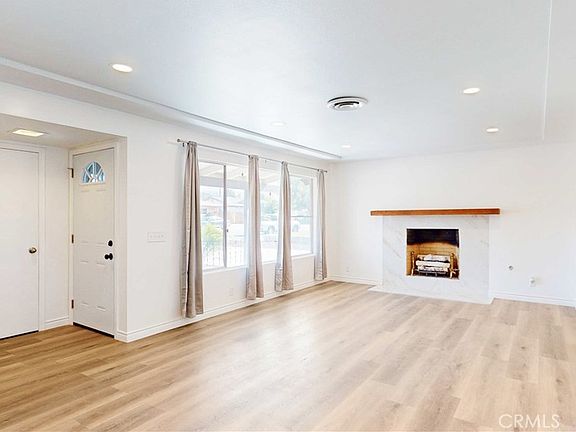 Step inside to discover a bright and spacious living room featuring a cozy fireplace, new recessed lighting, and brand-new flooring throughout. The modern kitchen is a showstopper, showcasing brand-new cabinets, sleek quartz countertops, and stainless steel appliances—perfect for home chefs and entertainers alike.