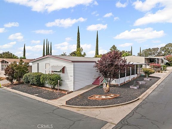 Welcome to Carriage Manor, one of Oroville’s most desirable 55+ adult communities where you own the land and enjoy no space rent! This well-maintained 3-bedroom, 2-bathroom manufactured home, built in 1985, offers approx. 1,512 sq. ft. of single-level living on a 4,356 sq. ft. lot. The home sits on a permanent 433A foundation, making it eligible for traditional financing. Inside, you’ll find an open floor plan with a spacious living area, dual-pane windows throughout, ceiling fans in every room, updated nickel-plated kitchen appliances, and a separate laundry room with washer, dryer, and standalone upright freezer included. The primary suite offers a private en-suite with a walk-in shower, while the inviting layout is designed for both everyday comfort and entertaining. Outside, a covered full-length patio provides the perfect spot to relax and enjoy the peaceful setting, while the low-maintenance yard, small garden area, and accessible ramps to both entrances add convenience. Additional highlights include a covered carport with two parking spaces, two storage sheds, and an HVAC system for year-round comfort. Carriage Manor is a well-established 55+ adult community offering a clubhouse, pool, and optional RV storage—ideal for those looking to downsize and enjoy a vibrant yet low-maintenance lifestyle.