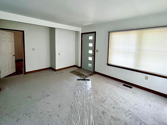 Living room with a lot of natural sunlight. Updated kitchen including new cabinetry, w/ large laundry room, and flex room off the back. Bathroom updates include new flooring, paint, vanity, and beautiful ceramic tile work. The backyard has a 1.5 car garage with covered porch, which combined with the new wood deck (2022), makes a great space for entertaining. The new wood privacy fence with a double gate makes backyard access easier. *Some exposed hardwood floors (+ under living room carpet), *House Roof (approx. 2 yrs old) * Garage Roof (new 2021) *Windows (new 2021) *Siding (new 2021) *Seamless Gutters (2022) *A/C (new 2022) *Smoke detectors are hardwired *New Paint (2022), *New Stainless Steele Refrigerator and Range (2022), and Much More!! *Quick and easy access to 80/94 and I-65. Only 35 miles to Chicago. Located near Indiana State Dunes, and just minutes from shopping and dining.