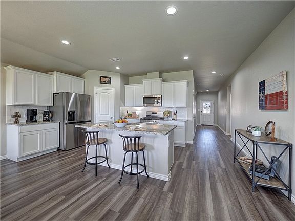 Situated in the desirable London Towne neighborhood—just around the corner from London ISD—this Texas Cali floor plan is a beautifully crafted single-story home offering over 1,800 square feet of living space, complete with 4 bedrooms and 2 bathrooms. Great curb appeal greets you on arrival. Off of the long foyer, you'll find the utility room, spacious secondary bedrooms, and a full bathroom—all strategically placed for privacy and functionality. The heart of the home features an open-concept design that seamlessly connects the kitchen, breakfast area, and living room—ideal for entertaining or everyday living. The kitchen shines with a granite-topped breakfast island, white subway tile backsplash, stainless steel appliances, and a corner pantry for ample storage. Just off the breakfast area, a standard covered patio offers a comfortable outdoor retreat. Tucked privately at the back of the home, the oversized primary suite offers a peaceful escape. It features a sloped ceiling, an ensuite bath with a large walk-in tiled shower, dual sinks, built-in shelving, and a spacious walk-in closet. Residents of London Towne enjoy access to a beautifully landscaped main boulevard entry, a 1.5-acre Central Community Park with a playground, pavilion, and playing fields, as well as walking paths that wind throughout the neighborhood. Energy Star Certified...
