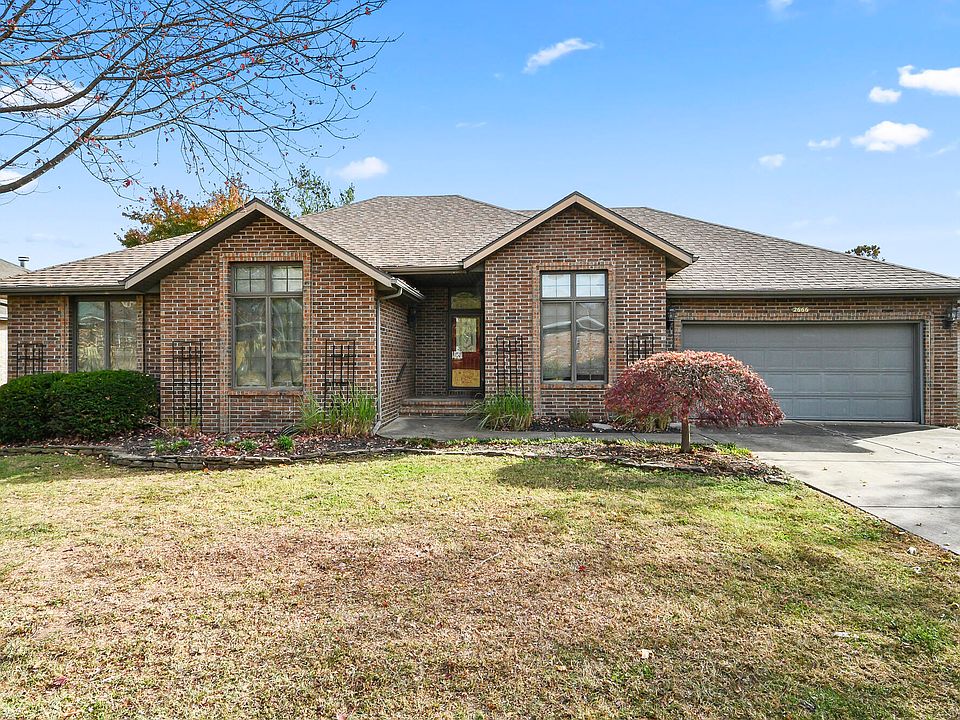 Don't miss this all brick walkout basement home which backs up to the beautiful Ozark Greenways trail. Located in Marlborough Manor, this home features 3 bedrooms on the main level, formal dining and living room w/ gas fireplace. Enjoy the view and your evenings on the screened porch off the kitchen. There's also a large open deck perfect for entertaining. The kitchen features a gas stove and solid surface countertops. There are beautiful hardwood floors throughout. The primary bedroom has a coffered ceiling and bath with double vanity and walkin closet. Downstairs, you'll find a second kitchen with separate wet bar, and a large family room w/ fireplace. There's also a 4th bedroom and bathroom along with plenty of storage. The basement walks out to a covered patio.