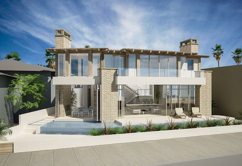 Beach front. White Water Views to Malibu, Catalina and Palos Verdes. A once in a lifetime opportunity to own this beach front new construction developed by Acropolis/Delphi Properties, LLC - Demetrius Doukoullos, a well-known, award-winning Hermosa Beach ocean front estates developer. Maximizing a very rare 70+ feet frontage this home brings you the best of indoor and outdoor living with 7,000 SF of luxury living. Extensive use of glass throughout. Features formal living/great room, dining room, family room as well as a nook area for casual dining overlooking white water beach views and surf. Infinity waterfall and luxury appointments throughout utilizing hardwood floors and natural stone. Large master suite and 4 additional guest ensuites. Other features include home theatre, disco room, recreation room, wine cellar, private elevator as well as roof top deck with a Jacuzzi tub, 2-car garage plus 3 additional parking spaces. Located conveniently to Hermosa and Manhattan Beach Pier, shopping and entertainment with the best of Southern California lifestyle at your doorstep. Designed by Louie Tomaro, plus a luxury interior design through Interior Inspirations. Estimated Completion: Fall 2013