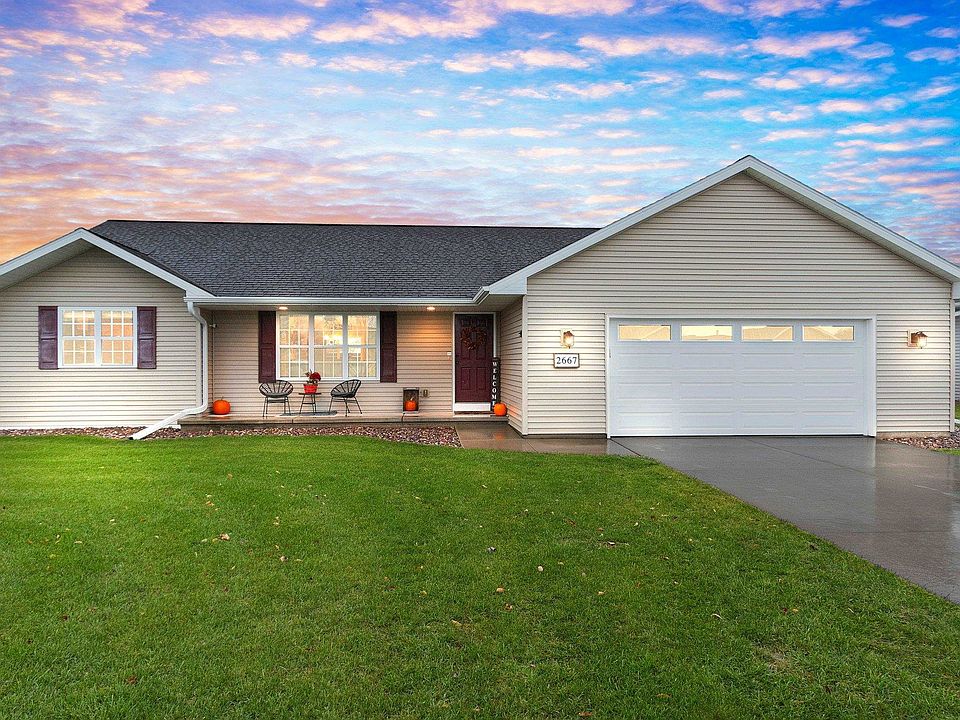 This beautiful ranch style home has been tastefully updated and truly feels like home. Situated on a large lot, this home boasts many sought after features such as double deep garage stall, first floor laundry, split bedroom design, master suite with w/in closet and primary bath, partially finished basement with egress window & stubbed for bathroom, and a home theatre setup complete with cozy wall mount fireplace and entertainment bar! Updates include landscaping, privacy fence, shingles, gutters, toilets/faucets, garage door, appliances, some flooring, etc. This home is located in a highly desired neighborhood and school district, do don't hesitate, book your showing today!