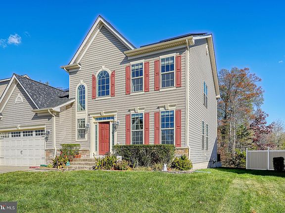 Step into luxury with this stunning 5-bedroom, 3.5-bathroom home offering over 5,200 square feet of sophisticated expansive living space. Located in the highly desirable North Pointe community, this home shows the pride of ownership while combining elegance and comfort. The exterior features stone skirting, a charming front porch, a stamped concrete driveway, an irrigation system, and a spacious 2-car garage. The home also offers solar panels for energy benefits. Upon entering, you'll be greeted by a grand two-story foyer with beautiful wood floors and a neutral color palette that enhances the home's open and airy feel. The elegant living room and adjacent dining room are bathed in natural light, thanks to two walls of windows. To the left, a breathtaking staircase leads you upstairs to even more impressive living spaces and a large landing. The main level offers a thoughtfully designed floor plan, including a half bath, an office/den, and an open-concept family room with a 4-foot extension and a state-of-the-art Control 4 smart home sound system throughout the home. The eat-in kitchen is a chef's dream, featuring a Central Vacuum (2024), gleaming granite countertops, a shimmering tile backsplash, and custom 42” cabinetry. It comes fully equipped with upgraded GE stainless steel appliances, a double oven, a center island with seating, and a bright, sunny morning room that’s perfect for enjoying your morning coffee or evening reflections. The primary suite is truly a retreat, offering a spacious walk-in closet, and a luxurious ensuite bath. The bath is designed for ultimate relaxation, featuring a soaking tub, a separate shower, and dual sinks for added convenience. On the upper level, you'll find three additional generous bedrooms, each offering plenty of space to suit the needs of family or guests. The fully finished basement further extends your living space with a spacious bedroom, an updated full bathroom completed with both a shower and a HUGE relaxing jetted shower, and an entertainment/recreation area. There's also a theater room for weekend movie nights, cozy gatherings, or amazing game nights. Nestled near three military bases, the National Harbor, and Washington, D.C., this home offers the best of both worlds—peaceful, serene backyard views with tree-lined privacy, all while being close to everything you need. Don't miss out on the opportunity to make this extraordinary home yours. Welcome home!