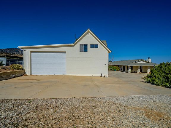 Open Floor plan home off PAVED road on South Side of Pinon Hills! You will love the airy open feeling when you enter this gorgeous home that offers tiled flooring, kitchen with custom cabinets, butcher block island and stainless steel appliances. The dining area has french doors that open into a courtyard. There are two wood burning stoves, one located in the living room and one in the Master Bedroom. The bedrooms are all generous in size, but the Master bedroom is HUGE with glass doors that also open to a courtyard! The master bath has a large walk-in shower and claw foot tub. There is an indoor laundry room. The property is fenced and cross fenced with horse corrals. DON'T FORGET THE 3 Car Garage and approx. 23x33 work shop with 18 foot door AND AN APARTMENT ON TOP!! This is truly an awesome Property!
