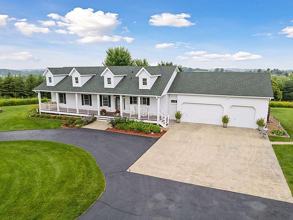 Your dream countryside escape awaits! Welcome to this extraordinary 9.5-acre property, where manicured fields and stunning views of rolling hills create a perfect retreat. This gorgeous land is close enough to highways for easy commuting/shopping but feels like a world away, filled with vibrant wildflowers and fruit trees in a natural preserve. And if you’ve ever dreamed of having horses, this could be the perfect spot for them! Property Highlights: This lovely house features 6 bedrooms and 3 bathrooms, with many gathering spaces and floor to ceiling windows. The gourmet kitchen has generous cabinets, modern granite counters, & 2 farm sinks with a walk-in pantry. Recent Upgrades: Enjoy brand new 30-year architectural shingles, durable steel siding, and seamless gutters that enhance both functionality and aesthetics. Eco-Friendly Features: Benefit from a rainwater recapture system and biodiversity initiatives designed to promote sustainable living. Outdoor Amenities: An expansive asphalt driveway leads to a charming cedar gazebo with a hot tub—ideal for relaxing evenings outdoors. Garage & Workshop: The oversized 3-car garage is heated and insulated, complete with a car wash station. Plus, there’s a professional-grade shop measuring 32x28, ready for your projects and hobbies. This shop has oversized garage doors for large vehicles, durable construction, epoxy sealed floors & walls. Ready for nearly any hobby or commercial task. Advanced Security: A top-notch security alert system ensures peace of mind, while a generator is in place for emergency preparedness.