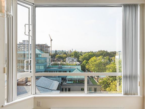 PRICED TO SELL! Spacious 700sqft one bedroom South-facing upper unit with city view in the most convenient Fairview location. Practical layout with hardwood floors throughout. Fabulous amenities including indoor pool, sauna, exercise area, garden courtyard and guest suite. Steps to BC Cancer Agency, VGH and just a short walk to Canada Line station with easy access to Downtown Vancouver, Richmond and YVR Airport. Shopping and restaurants are within walking distance. IMMACULATE condition and ready to move in! One parking space and one locker. Rentals allowed, pets allowed with restrictions. All measurements are approximate and verified by the buyer if deemed important.