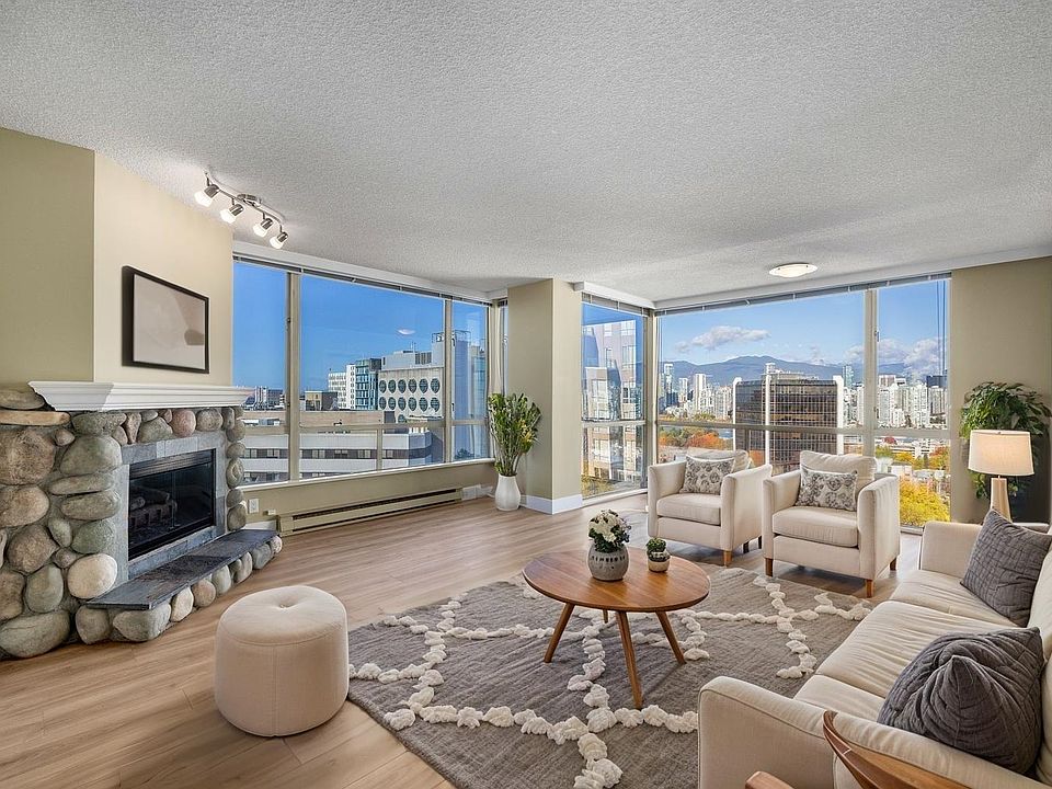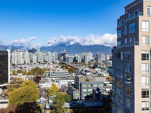 Enjoy breathtaking views at Cambridge Gardens, located in Fairview. Step inside this expansive, corner 1,253 sq.ft home featuring 2 bedrooms & 2 bathrooms. Spacious layout enhanced by floor-to-ceiling windows that wrap around the entire home, providing spectacular north-facing vistas of Downtown, North Shore mountains creating the perfect setting for entertaining or relaxing. This concrete high-rise offers a range of premium amenities: 2 Parking, Storage Locker, Indoor Pool, Jacuzzi, Sauna, Gym, Manicured Gardens, Tranquil Fountains, & Guest Suite. Fairview neighbourhood provides an abundance of nearby attractions & services just steps from your door, including the Canada Line, future Broadway Line, VGH, City Hall, City Square, & vibrant Cambie Street. OPEN HOUSE: October 25 & 26, 2-4PM