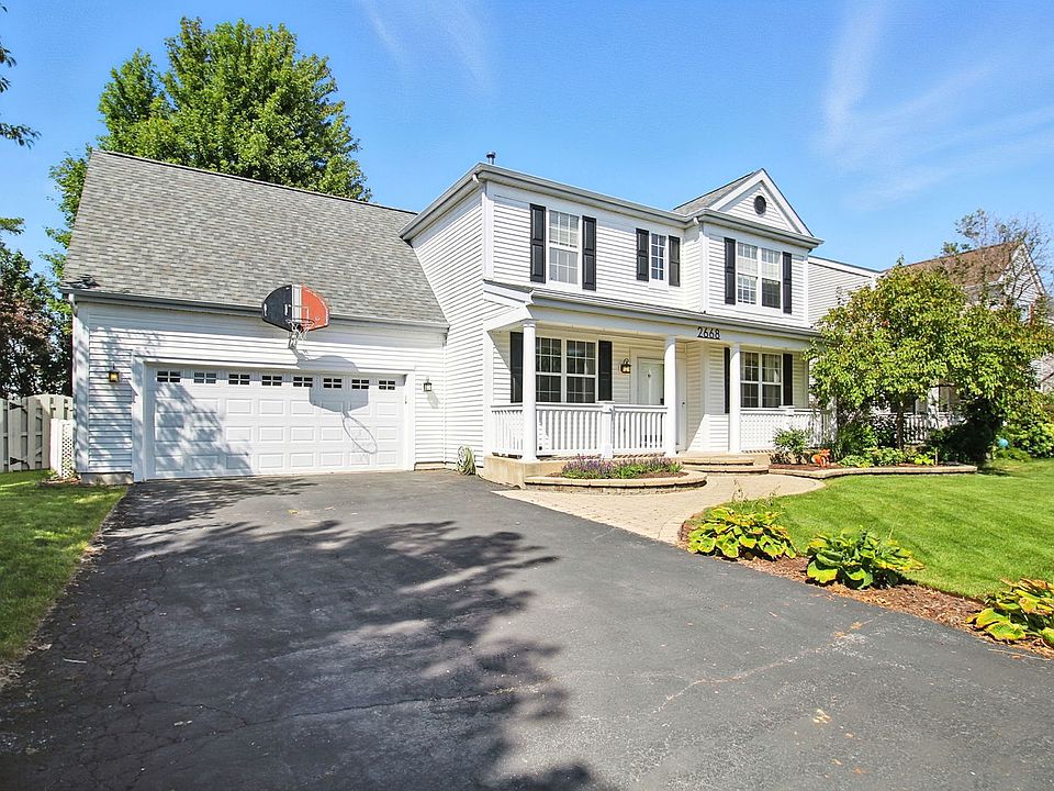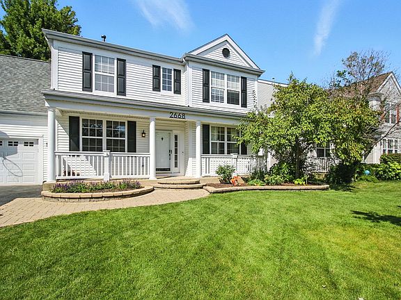 Welcome home! This spacious 4-bedroom, 2.5-bath home backs to a picturesque west-facing pond that is part of the forest preserve, offering year-round views and the opportunity to fish right from your own backyard. Inside, the home is filled with an abundance of natural light and features newer paint, updated flooring, and modern fixtures throughout. The main level includes a cozy living room with a gas fireplace and a first-floor office with custom built-in cabinets. Upstairs, you'll find four bedrooms plus an additional den-ideal as a sitting room, playroom, or home gym. The primary suite features a spacious walk-in closet and a full bathroom with double sinks. The finished basement comes complete with a surround sound system, perfect for movie nights! Step outside to a paver brick patio ideal for relaxing or hosting while enjoying sunset views over the pond. Recent upgrades include a roof less than two years old, a new water heater, and a new sump pump. Perfectly located just down the road from schools in the Oswego 308 district, as well as nearby parks, trails, and community amenities.