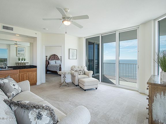 Rare opportunity to own a 3br/3ba western corner unit in this desirable beachfront complex! Beau View Condos were voted 'Best Condos' in Best of Coastal Mississippi 2023. The water views of the Gulf and the beautiful Mississippi sunsets are yours every day from the spacious balcony or through the floor to ceiling windows! This one-owner unit is in fabulous condition, and comes with all furnishings and decor shown in photos. This unit features a 200 sf wrap-around balcony, luxurious primary suite overlooking the Gulf, gourmet kitchen with granite, open living area, 9' ceilings, split bedroom plan, neutral color palette. New HVAC and dishwasher. Beau View is a private, secured gated complex with amenities that include a reception area with professional management, a clubroom for meetings, events, parties, etc., a pool, a library, a theater, a fitness center with saunas, and more! New roof 2022.