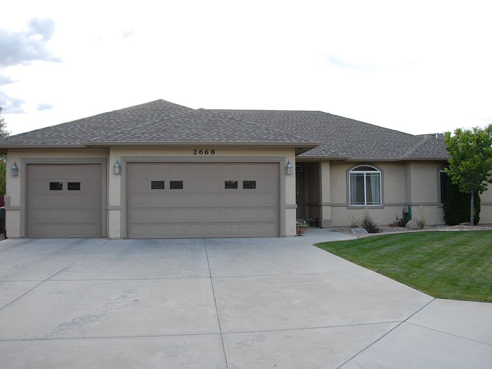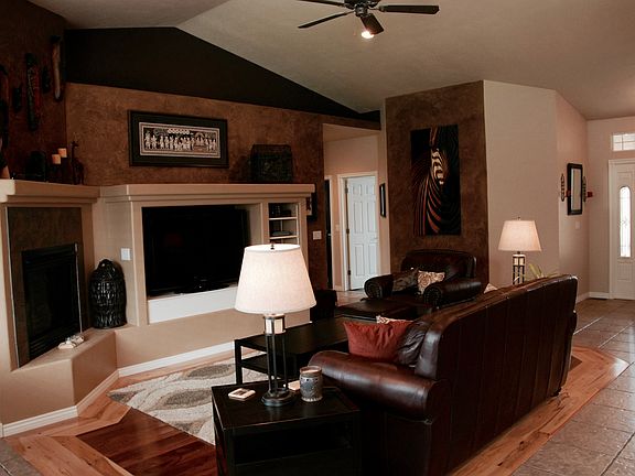 Entertainers dream both inside and out! Conveniently located north of town on a quiet cul-de-sac. The open concept interior layout is ideal for hosting family and friends. The home has 3 bedrooms, an office, and 2.5 baths. Extras include custom paint, window blinds, ceiling fans in all rooms, gas fireplace, and built-in entertainment center. The kitchen is complete with large center island and all stainless steel appliances. The home is low maintenance with wood flooring and tile throughout. It also boasts central air conditioning and heating as well as a built-in vacuum system. The inviting outdoor area boasts a huge Trex deck patio covered by a pergola with pull down shades. The xeriscaping, green space, fire pit, and hot tub complete the exterior ambiance. The oversized 3 car garage has ample space with a dedicated workshop area, built in shelving, and a wash basin. Grand Vista Neighborhood is on canal water that feeds the sprinkler system. Home will be shown by appointment only – you don’t want to miss seeing this one!