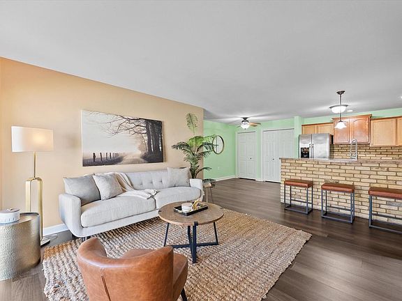 Rare 2BD/2BA condo in the desirable Hidden Ponds community. This first-floor unit features a private entry, 2-car att garage, & sliding doors leading to the patio. Inside, you'll find open-concept living, dining, & kitchen w/Provenza LVP flooring, double pantries for ample storage, breakfast bar, & custom Cream City brick accents. The primary suite offers a WIC & en-suite bathroom w/dual vanity, a walk-in shower w/dual shower heads, & serene nature views right outside your window. Additional highlights include in-unit laundry, updated appliances/mechanicals, a spacious 2nd bedroom w/a built-in closet system, & a renovated 2nd full bath. Hidden Ponds provides a peaceful, tucked-away setting just minutes from Lake Michigan, South Shore Beach, Sheridan Park, conveniences & more!
