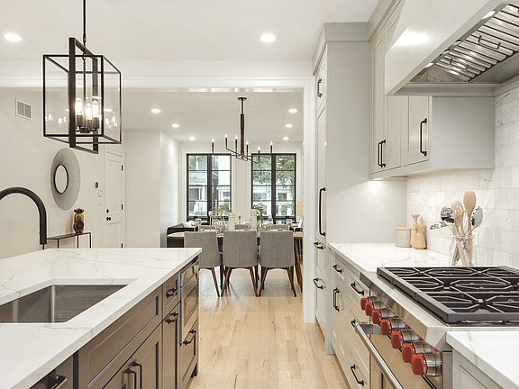 New construction duplex down designed by Studio Group and Built by V&M Development offers a modern, open concept floor plan with 3 bedrooms, 2.5 Bathrooms, rear patio and garage roof deck. Professionally designed, with thoughtfully curated, top of the line finishes throughout and meticulous attention to detail, this is truly a one of kind home. The kitchen features a massive island, Wolf range, built-in Sub Zero refrigeration, Circa pendants, handcrafted Amish cabinets, and matte black fixtures & hardware. The living room features a fireplace and designer's custom pocket bar with 4 rolling panel doors that match the island, open shelving, tile backsplash, bar sink, beverage refrigerator, and articling sconces. The wet bar is flanked on each side with a coat closet and pantry. The entertainment space continues from the family room to directly connected garage roof deck which is fully built out in composite decking. On the lower level, the master suite features a spa-like bathroom with a separate soaking tub wrapped in stone, steam shower, heated floors, dual weathered oak vanity, Restoration Hardware sconces & mirrors, and Kohler Purist plumbing fixtures. The lower level is completed by large bedrooms, walk-in laundry room, separate linen closet, and a beautiful full bath with dual vanities. Hot water radiant heat and hard-wired security system are included and the home is fully pre-wired for A/V & home automation. All of this on a beautiful tree-lined street in the heart of Lincoln Park.