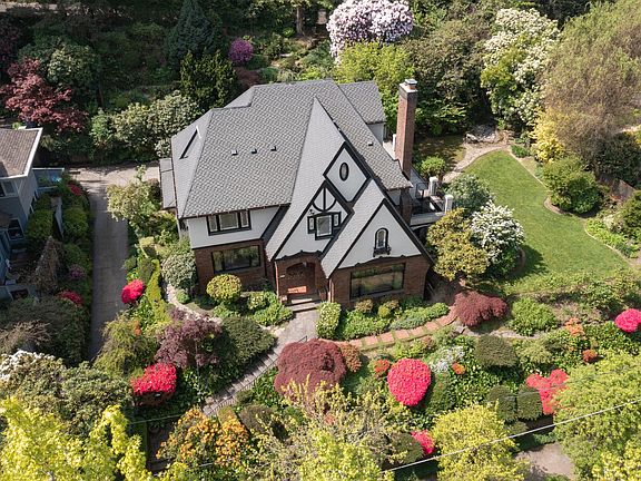 Majestic Tudor Estate Built in the 1930's with impeccable character. Situated on oversized lot in coveted NW Heights/Nob Hill. Beautiful detailing can be seen throughout including crown moldings, leaded glass windows & built-ins. Expansive living room w/wood burning fireplace, wide arched doorways and French doors create an atmosphere of welcoming grandeur. Updated gourmet kitchen is a chef's dream with professional grade appliances, slab granite countertops and decorative tile backsplash. With five resplendent bedroom suites, the home features a finished attic completed with cathedral-style vaulted ceilings, office space and full bedroom ensuite. Downstairs media/family room, full kitchenette and additional room that could also serve as a separate living quarter for an au pair. Convenient access to garage at the rear of the house. Spacious brick courtyard patio offers cover from balcony above permitting for year-round use. Surrounded by lush gardens, flat well-manicured lawn and terraced hillside vegetation, this outdoor oasis is suitable for lavish gatherings or tranquil relaxation. City views, neighborhood trails and a short distance to iconic NW 23rd Ave. Don't miss this rare opportunity to live in a piece of Portland's finest real estate!