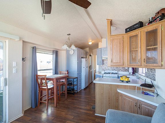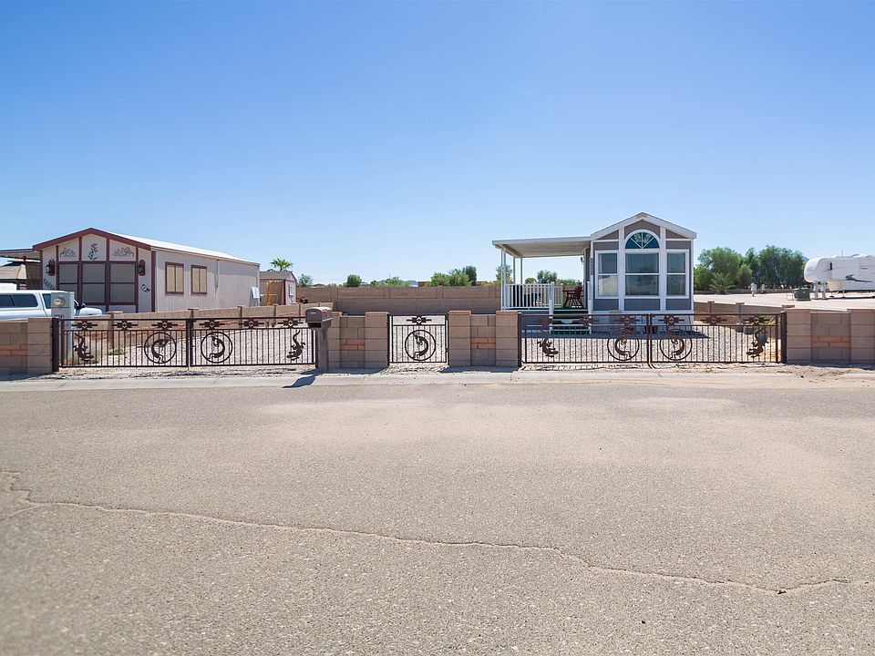 Welcome to this charming Park Model Home located in The Fairways at Coyote Wash! Offering 395 sq. ft. of efficient living space, this home is being sold fully furnished and is truly move-in ready. Inside, you’ll find wood flooring, a bright living area, and a modern kitchen complete with solid-surface countertops, refrigerator, dishwasher, and gas range/oven. The primary bedroom includes ceiling fan, blinds, and cozy finishes. Outside, enjoy the convenience of RV access, an RV port with hook-ups, a covered patio, and a storage shed. Additional features include central refrigerated cooling, washer/dryer, water softener, and desert landscaping with front, side, and back fencing. Best of all this home has no HOA and no age restrictions, giving you the flexibility you’ve been looking for. Perfect as a full-time residence or a desert retreat, this is one you won’t want to miss!