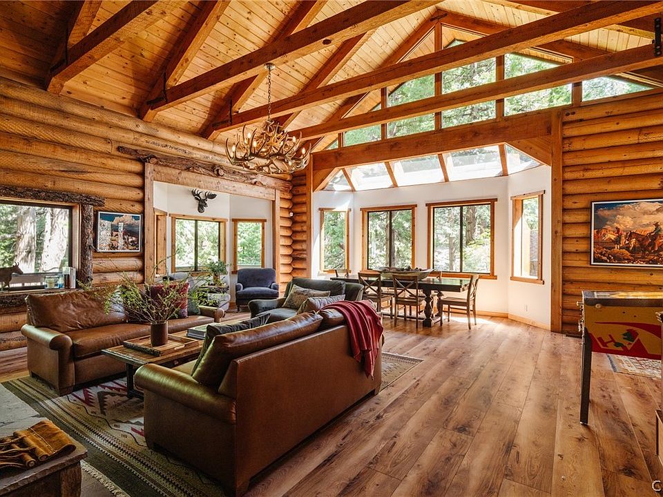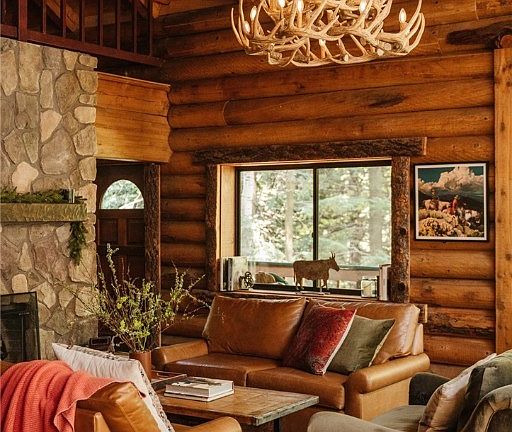 Sited on nearly an acre of land and hugged by towering trees, “Kips Cabin” is a reimagined, fully furnished, chic, luxury lodge, located in the heart of the mountains. Truly a magnificent mountain retreat. As one of the few true log homes in the area and with a detailed list of recently added amenities, this 5 bedroom getaway just 80 miles from Los Angeles offers a unique experience. The quintessential lodge design is showcased in the main living spaces with open beamed ceilings, a two story stone fireplace and architectural windows that bring in an abundance of natural light perfectly framing the surroundings. Playful yet rich in quality, the home has been designed to embody an elevated life in the country.