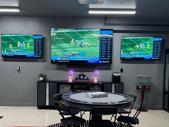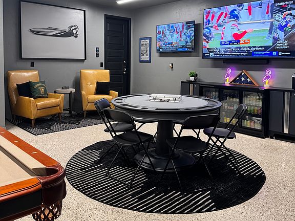Enjoy the temperature controlled garage hosting billiards, poker table and an 85 inch smart TV.