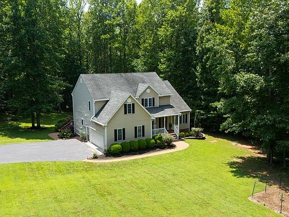 FIRST-FLOOR PRIMARY BEDROOM! Nestled on a SERENE AND PRIVATE 5-ACRE LOT in the highly sought-after Dorset Meadows community of Eastern Powhatan, this beautifully maintained 2,517 sq ft home offers space, comfort, and modern updates in a peaceful country setting—just minutes from everyday conveniences. Recent improvements include NEW WATER HEATER; NEW CARPET; REFINISHED HARDWOOD FLOORS ensure a move-in ready experience. The open-concept layout on the main level is filled with natural light, creating a warm and inviting atmosphere throughout. The spacious living room with VAULTED CEILINGS flows seamlessly into a well-appointed kitchen featuring granite countertops, ample cabinet space, breakfast nook, eat-in kitchen and a layout perfect for entertaining with hardwired surround system that plays both inside and outside. Just off the living room, a versatile bonus room awaits—ideal as a home office, playroom, or creative space. Slip away into your stunning first-floor primary suite, complete with HARDWOOD FLOORS, VAULTED CEILINGS, and a PRIVATE EN SUITE BATH featuring dual vanities, jetted tub, a walk-in shower, and walk-in closet . A dining room, laundry room and oversized GARAGE round out the first floor. Upstairs, you'll find brand-new carpeting throughout, adding a fresh feel to the space. Three generously sized bedrooms offer comfort and flexibility for family, guests. All bedrooms feature crown molding . A flex room above the garage provides even more versatility—perfect for a media room, home gym, or hobby space. The back porch offers plenty of room for outdoor dining, grilling, and relaxing—all while overlooking your backyard retreat. Whether you crave extra space, peaceful surroundings, or a place to entertain, this home checks every box.