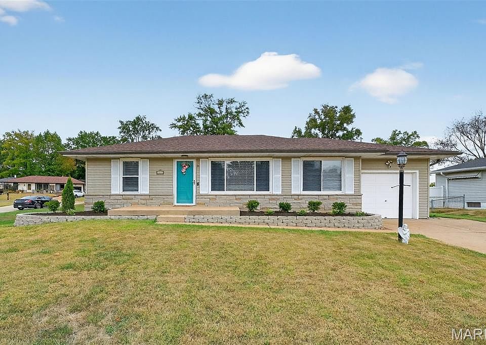 Drive up and fall in love with this beautifully updated ranch home on a corner lot. Beautiful curb appeal, a new oversized front porch (2024) and fresh landscaping (Oct 2025) welcome you home. Inside, large windows fill the space with abundant natural light. The expansive living room opens to the stylish kitchen boasting quartz countertops, custom tile backsplash, and gunmetal appliances. The added living room space was once a third bedroom and can easily be converted back, if desired. Two spacious bedrooms feature custom closets and the updated hall bathroom finishes the main level space. The lower level offers a huge rec area and full bath with new custom tile shower and cabinetry. Enjoy the large, fenced backyard with covered patio & hot tub, an additional patio area and attached storage shed. Other updates include a new roof (Aug 2025), newer HVAC (2020), LVP flooring, and modern lighting. All of this, tucked away on a not thru street in a quiet Mehlville neighborhood, make this home one that you do not want to miss!