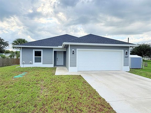 ***BRAND NEW 2025 NEW CONSTRUCTION. NO HOA. LUXURY FINISHES*** STORM PROOF WINDOWS. WASHER/DRYER. GUTTERS. 10 FT VAULTED CEILINGS. QUARTZ COUNTERTOPS. PORCELAIN WOOD TILE. Need help with closing costs, ask about seller concessions toward closing costs! Modern 3BR/2BA home. Check off all the boxes with an open floor plan, large kitchen island with quartz counter tops and bathrooms, foyer, pantry closet, covered front porch, 2-car garage, covered back porch and impact windows and doors (don’t get stuck putting up shutters during a hurricane). Additional features include gutters all the way around the home, pre-installed by the builder, and spray foam insulation to help lower the electric bill in the hot summers. Washer and dryer included from the builder.
