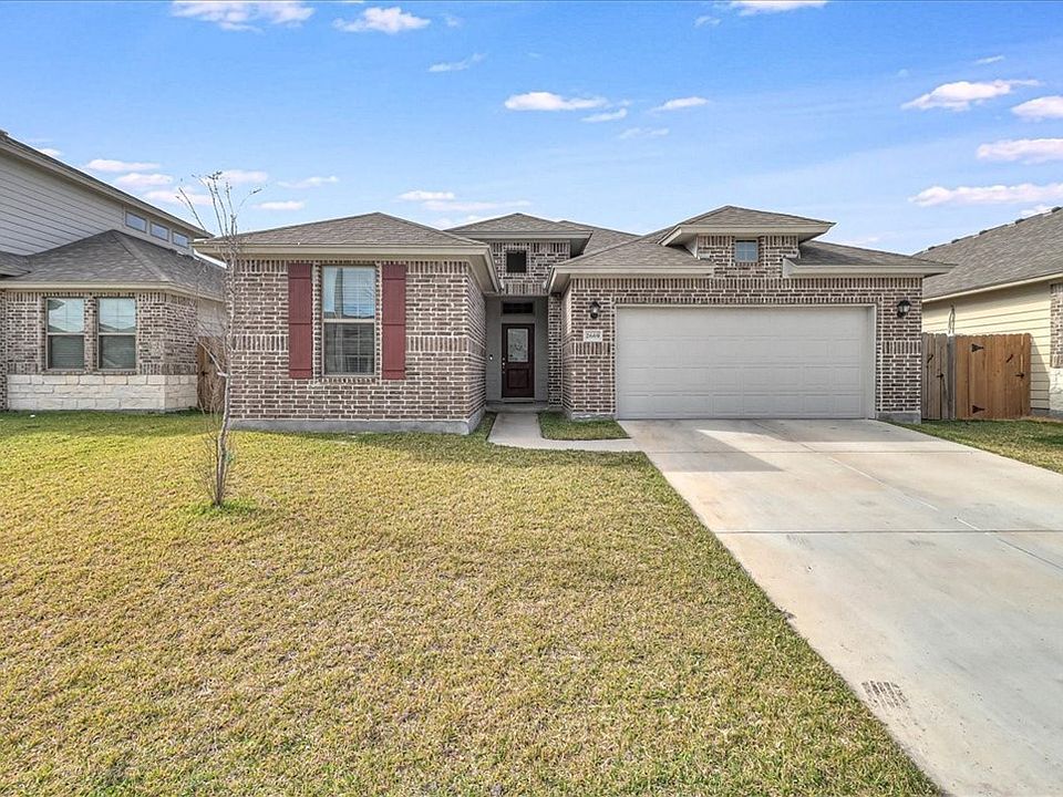 This stunning home was built in 2022 by Hogan Homes in the prestigious King's Landing community in London ISD. The open-concept residence features 3 spacious bedrooms, a versatile private office, upgraded light fixtures, wood-look tile flooring in the main areas, and plush carpet in the bedrooms. The split-bedroom layout offers privacy and flow, while the elegant kitchen boasts quartz countertops, stainless steel appliances, gas cooking, a large island, and a walk-in pantry. The primary suite is a true retreat with dual vanities, a massive rainfall shower, and a walk-in closet with direct access to the oversized laundry room. Enjoy relaxing evenings on the covered patio in the spacious backyard, which has room for a pool. Located minutes from all London ISD schools, this home provides both convenience and comfort being a short drive to restaurants, shopping, entertainment, and hospitals, about 15 min to Corpus Christi Intl Airport and downtown, 18 min to Port of Corpus Christi and North Beach, 21 min to NAS Corpus Christi, CCAD, and Texas A&M CC, 25 min to North Padre Island beaches, and about 37 min to NAS Kingsville. Qualified VA buyers can benefit from an assumable 5.625% VA loan with no down payment required. Call today to schedule your private tour of this impeccable home!