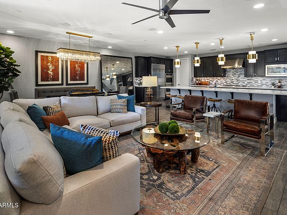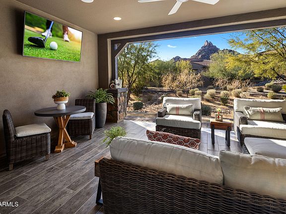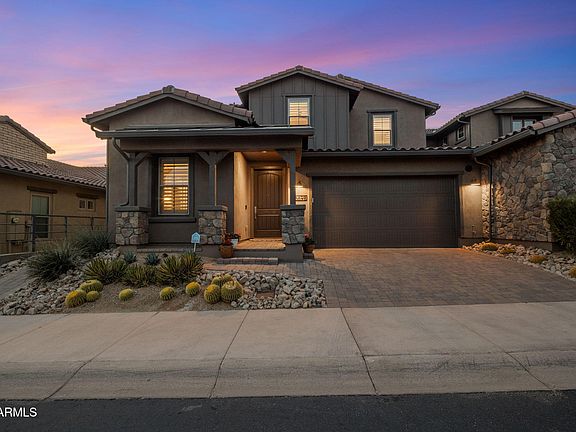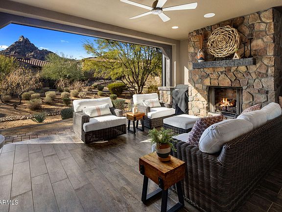 Highly upgraded North Scottsdale home at the base of Pinnacle Peak. This home is being offered furnished and is the perfect lock and leave. Gated community that is walking distance to Pinnacle Peak hiking, restaurants, and sits adjacent to the Four Seasons Resort. World class golf is minutes away at Troon North. Two primary suites, one located on the main floor, along with two additional en-suite bedrooms. Open floor plan showcasing modern-rustic design, views of Pinnacle Peak, and a custom stacked stone fireplace. The gourmet kitchen has an expansive island, built in appliances, and double oven. The upstairs primary suite has a private balcony with views of Pinnacle Peak, cozy seating area, soaking tub, and oversized closet. Enjoy the warmth of outdoor fireplaces while watching Dramatic sunsets that silhouette Pinnacle Peak from either outdoor patios.