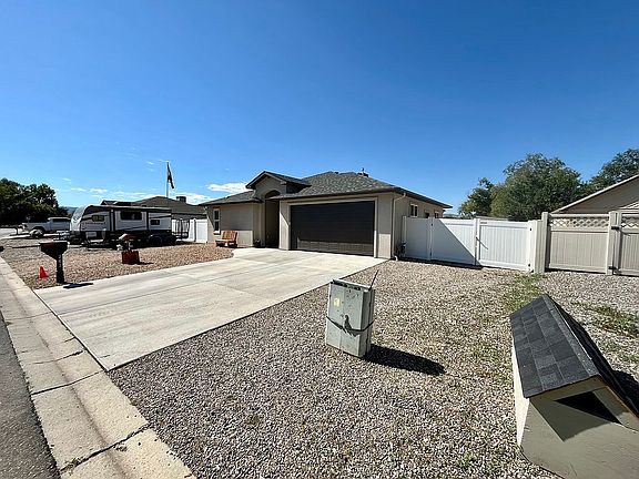 $445,000 + $29,500 for solar = $474,500.00 with the option to add it to the loan or take over my current loan with same apr and term all in your name through Corning Credit Union. I had this house built in 2020 and have been the only owner for four years. I made it a beautiful home with everything you would need to be a successful homeowner. It is a beautiful ranch-style home with a two-car garage, three bedrooms, and two bathrooms. The master bedroom has a walk-in closet, and there are built-in shelves in the other rooms. The house features a gas fireplace, stucco finish, solar panels, and more. Over 75 feet of RV parking with a white vinyl fence all the way around on a 1/4 acre lot in the city of Grand Junction with no HOA fees. Extra parking for 5-6 spots upfront and a beautiful 1500+ sqft of Kentucky bluegrass sod in the back with a very nice sprinkler system that feeds off the Colorado River. It has a brand new 8x10 shed built for more storage that matches the color and shingles, and an area for a dog run (10x15) next to the shed. This property has 10 acres of city development behind it and an amazing community around it. This house has a lot more to offer than what’s listed. Come check it out. Please call to schedule a showing, and I will demonstrate all the improvements made to make this a beautiful home for you and your family. *Also, paying 2% compensation to the buyer's agent. No compensation will be paid on any seller's concessions.