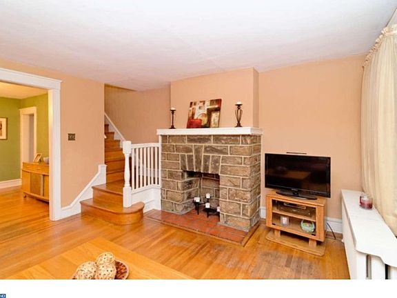 Move in ready! Fabulous Tree-Lined street. Close to schools, shopping and transportation. This exceptional 3 bedroom, 1 bath home has many unique features. Including Large living room with Stone fireplace, Large Dining room, Updated large kitchen with D/W with build in Microwave, first floor laundry, first floor powder room, walk out on to the deck to a large back yard with a detached garage. Upstairs features 3 bedrooms and a ceramic tile bath with two pedestal sinks. Hardwood floors throughout the home. Open front porch. Located less than half mile to E.T Richardson Middle School. Spring Valley Park and the 101 Septa trolley line for easy access to 69th street and down town.