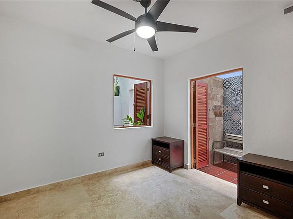Experience the timeless beauty of Old San Juan in this beautifully remodeled one-bedroom, one-bathroom first-floor apartment located directly across from the charming Plaza de la Barandilla. This inviting residence blends colonial character with modern comfort, featuring a stunning façade on one of the area’s most picturesque streets. Inside, the space welcomes you with 16-foot-high ceilings and elegant Italian travertine floors that create a sense of openness and sophistication. The living area includes a wood mezzanine that adds flexibility for an additional bed, guest area, or home office. The brand-new kitchen is thoughtfully designed with sleek cabinetry, quartz countertops, and generous storage space, while the apartment also offers plenty of closets to maximize organization. Natural light flows through the front door, side windows, and a small interior patio at the back, creating a bright and tranquil ambiance. Every corner of this apartment reflects quality and care, from its updated finishes to its seamless blend of historic details and contemporary style. Step outside and enjoy one of the most desirable spots in Old San Juan—just steps away from a neighborhood coffee shop, surrounded by colorful architecture, cobblestone streets, and vibrant local culture. Whether as a primary residence, vacation getaway, or investment property, this exceptional home offers the perfect combination of elegance, convenience, and authentic Old San Juan charm.