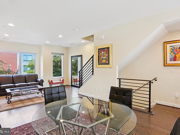 Welcome to this rare and highly sought-after contemporary townhouse nestled in the heart of downtown Crown Farm. This exquisite four-level residence offers an unparalleled blend of convenience and tranquility, placing you just a heartbeat away from an array of vibrant restaurants and shops, while maintaining a serene and private ambiance. The gourmet kitchen is bathed in natural light, leading to an expansive deck perfect for outdoor dining or relaxation. There are 2 decks with spectacular views – one on the main level with views of open space and woods, and an upper level deck with gorgeous skyline views. The main level's open concept seamlessly flows from the kitchen to the dinning room and continues to the spacious living room, featuring monumental nearly floor-to-ceiling windows. Ascending to the next level, discover two luxurious master suites, each with their own en-suite bathroom, Continue to the top floor, where a versatile loft area awaits, complete with a fourth bedroom and full bathroom. This level also boasts a stunning roof deck with panoramic views of downtown Crown, and a double-sided fireplace adds a touch of sophistication and warmth. On the entry level, you’ll find another bedroom and full bath, perfect for an in home office or gym. 1 car garage with 2 storage closets, ample parking available both using the driveway and a parking lot for guests in the rear of the home. This remarkable townhouse presents a rare opportunity to enjoy modern living with unmatched accessibility and serene seclusion in one of Crown Farm's most coveted locations.