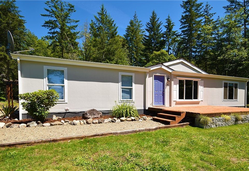 Three bedroom Two bath Modern Manufactured home in pristine condition. 2.28 Acres of view property with western exposure of Olympics and Case Inlet. Just up the hill from Victor. Just a few minutes from Allyn for shopping or a round of golf. Do you have a large hobby or a home business? Then enjoy a HUGE 50 X 40 detached shop with power and insulated ceiling. Large kitchen with eating bar. Roomy dinning, laundry, family and living area. Private well. Gravity septic system. Large deck.