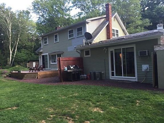 Plenty of space in this 4 bed 1 & 1/2 bath Cape Set on 3+ beautiful acres surrounded on three sides by conservation land. Unlimited possibilities. This home has a 830 sqft attached 2 bed in-law as well as a beautiful 2 floor 850 sqft post and beam with in-home business potential. This property offers quiet country living surrounded by beautiful grounds, pond and private trail. Many updates have been done. This property is just waiting for your personal touches. This property also comes with two storage sheds as well as a wood shed.